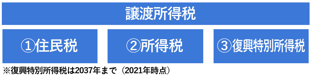 不動産の売却で得た収益には「住民税」と「所得税」、「復興特別所得税」がかかるため、まとめて「譲渡所得税」と呼ぶ。