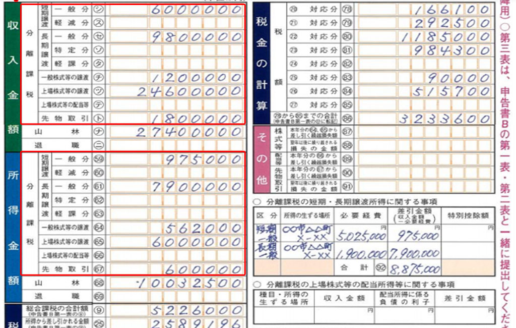 例えば、課税譲渡所得金額が3,000万円の場合は