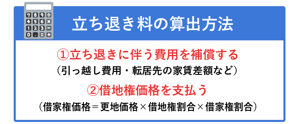 立ち退き料としていくらくらい支払わなければならないのかはチェックしておきたいポイントなので、算出方法を詳しくご紹介します。
