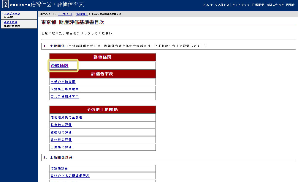 目次が表示されたら、一番上の「路線価図」をクリックします。