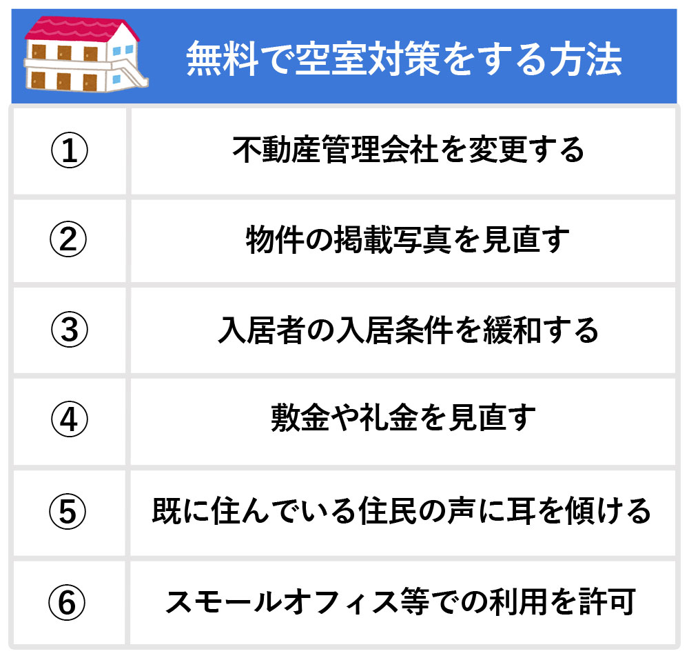 まずは、無料でできる以下の6つの空室対策をご紹介します。