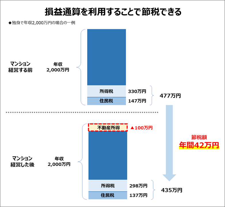 ・マンション経営が赤字の場合:損益通算を利用することで所得税や住民税を節税できる