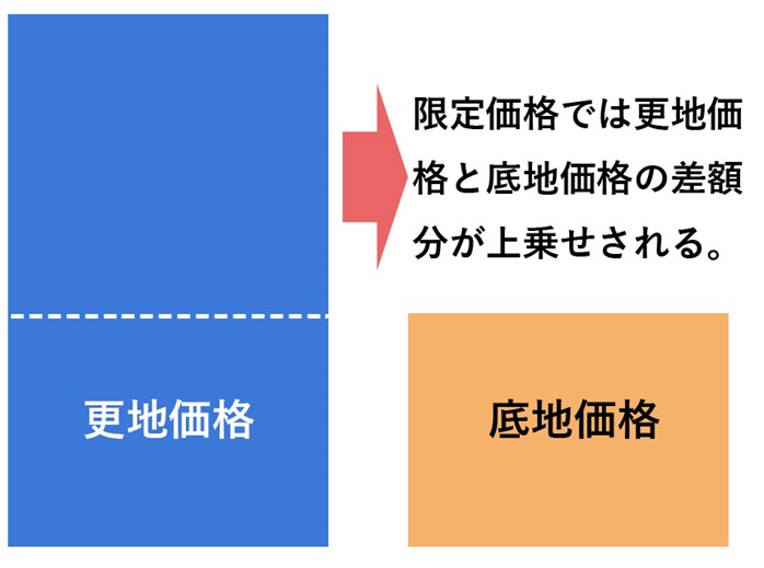 ◎限定価格は底地の通常価格-更地価格で算出した差額分を底地の通常価格に上乗せした価格となる