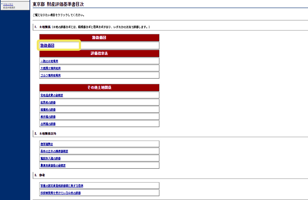 目次が表示されたら、一番上の「路線価図」をクリックします。