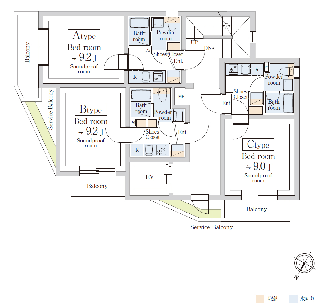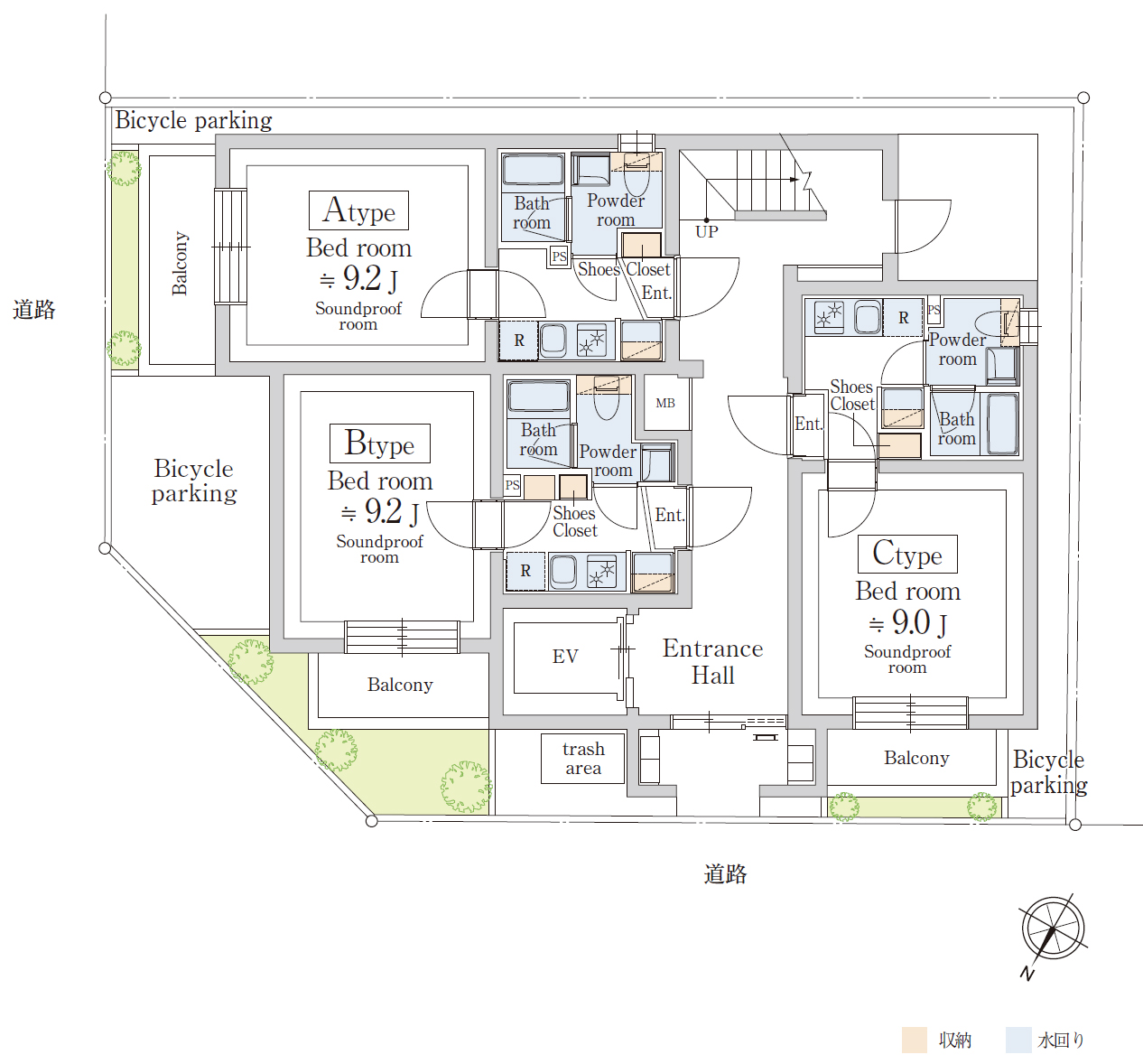 - 1Kタイプ(25.02~25.04㎡)×13戸