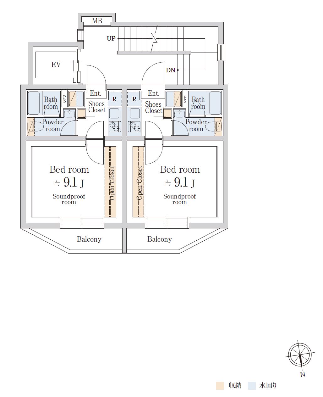 全戸遮音構造の集合住宅において世界最高水準の防音性能である遮音性能 目標値100dB(500Hz)の防音室を完備し、グランドピアノ・ギター・生ドラム・管楽器を 含む全ての楽器の24時間演奏・バンド演奏が可能となります。