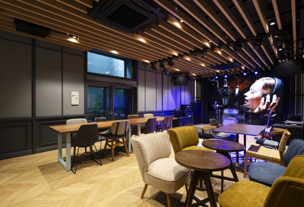 地下には、完全防音の「サウンドプルーフミュージックラウンジ」がオープン。ツナガルデザインのカンファレンスルームとしての利用のほか、サウンドプルーフ入居者の方々にご出演頂く「サウンドプルーフバンドライブ」などの音楽交流イベントの開催を予定しております。
