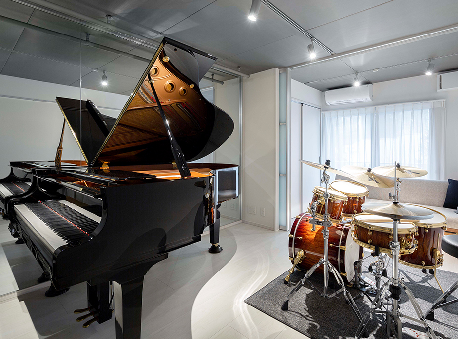 ツナガルデザインの最新特許工法(特許6815615号・2020年12月25日登録のメガフレーム防音構造)により、バンド演奏音およびダンス床衝撃音の完全防音を実現しました。